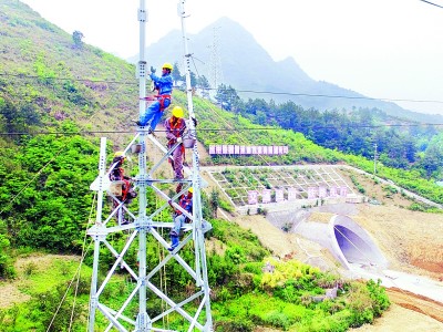 “这些矗立在大山之上的电力铁塔,都是由我们用一块块大小长短不一的塔材拼接组建而成。材料运上来,我们打好基础后就要一块块‘搭积木’了。”塔顶上,4名绑着安全绳的工人正坐在离地面30多米高的塔上,将起吊上来成片的塔材安装固定到铁塔上。
