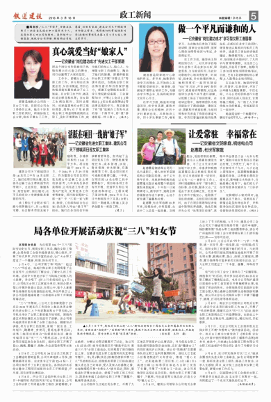 建筑公司天下锦城项目部18名员工中有13名女职工。她们在项目领头雁、党支部书记兼工会主席侯丽芳的带领下,立足岗位、勤勉务实、刻苦钻研、岗位建功,在平凡的岗位上发挥着极其重要的作用。 该工程位于合肥市祁门路与南屏路交口,共13栋住宅楼、社区服务用房及地下建筑等,总建筑面积约11.61万平方米。项目组建于2014年6月,于2016年1月29日竣工。作为建筑公司首位项目党支部女书记兼工会主席的侯丽芳,几年来先后多次获得局、公司先进工作者、优秀共产党员、优秀党务工作者等荣誉。项目部设置的“五部一室”中“三部一室”(财务、物资、工经部和综合办公室)的负责人均由“娘子军”担任,她们在各自岗位中扮演着重要角色,担负起了全项目党务工作、物资机械管理任务、成本管理、试验、财务管理、劳务管理、后勤保障等工作,是全项目部不可或缺的重要力量。一年来,在项目部13名女职工的辛勤耕耘下,项目部各项工作有序开展,受到甲方和公司的表扬和肯定。工程实现了滚动发展,2016年元月6日中标皖投天下名筑(合肥)项目一期建筑工程施工及总承包服务一标段工程。(建工)