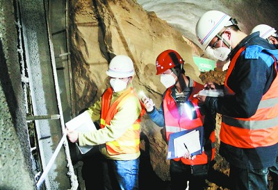 ⇧兰州枢纽项目部技术及安检人员联合检查兰州五星坪隧道钢拱架间距。 |