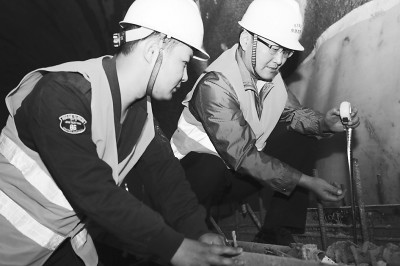 9月7日下午,一公司京沈客专(河北段)四分部柳树底隧道内机声隆隆,人头攒动,一派施工大干的场景。此时几个戴着安全帽的“不速之客”来到了这里,拿出卡尺在作业完工的区域内量量测测。