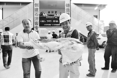 ⑥9月13日,局石(家庄)济(南)铁路经理部历城制梁场(二公司)开展“心连心、手牵手、谋共赢、迎中秋”活动,向协作队伍赠送猪肉、月饼等中秋节礼品。 (刘洋 高炼 摄) |