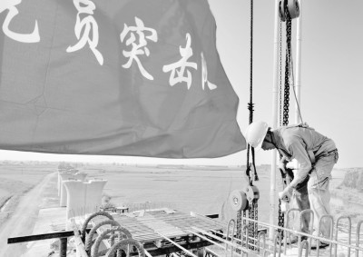 ▲8月28日,在局哈(尔滨)牡(丹江)铁路客专线站前一标四分部(二公司)阿城北特大桥工地上,共产党员计松正在进行连续梁作业。今年复工以来,该分部党工委以“旗扬冰城、建功哈牡”党建主题活动为契机,利用有利的施工黄金季节,大力开展“党员先锋工程”争创局“红旗项目部”活动。活动中以“两学一做”作为党员的工作标准,在生产一线要求党员把身份亮出来,把质量摆出来,把进度晒出来,极大地激发了全体党员的生产积极性,实现了工程进度最快、施工质量最优、文明施工最好,路基段标准化施工被业主列为“标杆工程”。 (徐春光 刘华成 龙杰 摄)