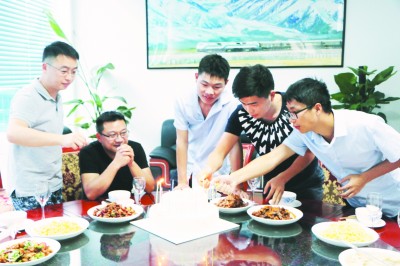 ⇧9月11日晚,城轨分公司郑州地铁5号线06标项目部小餐厅里欢声笑语,洋溢着幸福的气息。原来是项目部为10名员工举办集体生日会,并为“寿星”送上生日祝福和礼物,还将“寿星”的照片印在生日蛋糕上。“这是我最难忘的生日,每一个小细节都让我感受到项目部这个大家庭的温暖。”见习生小余激动地说。 (和玲玉 摄) |