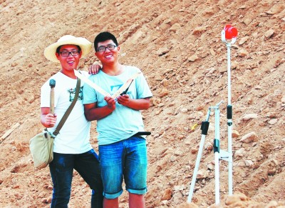 ⇧高毅(右),是局蒙华铁路经理部二工区(四公司)的一名实习生。他说:“这里虽然条件艰苦、工作繁重,但每个人都很关心我,最令我开心的还是结识了亦师亦友的师傅——尚志刚,在他毫无保留的帮助下,我很快走出大学的象牙塔,学到了学校里接触不到的新知识,更学会了很多做人的道理。在工区工作和生活的三个月里,回忆满满、收获满满、幸福满满。”图为高毅和尚志刚在蒙华铁路白城隧道进口测量时进行短暂的工间休息。(解明升 陈子华 摄) |