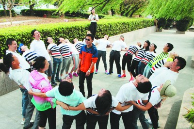 ▲为了培养团队精神,增强团队凝聚力,9月11日,四公司机管中心组织了为期一天的以“忠诚合作、积极乐观、努力开拓、勇往直前”为主题的户外拓展训练活动,34名员工及家属参加了“沙场点兵”、“杯水传情”、“达芬奇密码”和真人CS游戏等活动。 (孙红丽 谯凯 摄)
