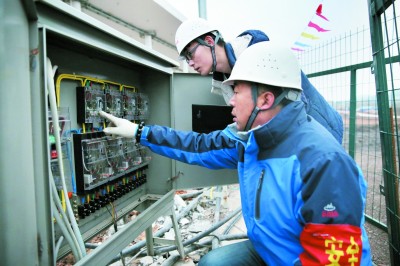 ▲2016年12月26日,瑞九铁路2标经理部安全员左其彬(右)、青年安全监督岗岗员张浩炎(左)在认真检查庐山站施工配电箱。为确保冬季施工安全,局瑞(昌)九(江)铁路2标经理部(五公司代局指)组织群众安全监督员、青年安全监督岗岗员、安全员联合对庐山站站改项目进行安全巡检,发现安全隐患2处,均得到及时处置并整改闭合。 (张召 摄)