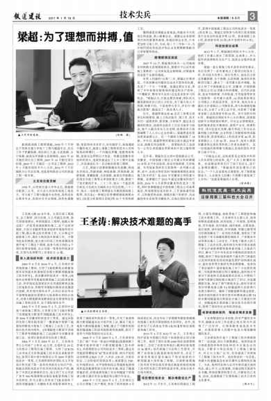 王圣涛入路20余年来,从项目部工程部长、总工程师、项目经理、五公司副总经理,到代局指指挥长,再到局副总工程师;他既从事过武广、沪昆等高速铁路的施工,也干过深圳地铁、大连引水隧洞等复杂地质环境条件的市政工程;既从事过技术管理工作,又从事过行政管理工作,现在又转回技术管理工作。不管角色如何转换,他大部分时间工作性质都没有离开地下工程这个领域。他参与或主持的6个项目获得省部级、总公司级一等奖的科技进步奖,在国内各种期刊上发表论文11篇。