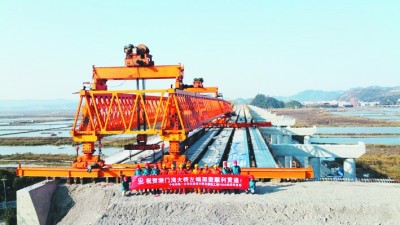 本报台州讯 1月20日,由一公司乐清湾大桥及接线工程3标项目部施工的漩门湾大桥左幅顺利架通。