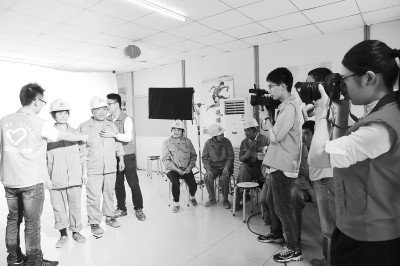 4月6日,建筑公司广州地铁官湖车辆段项目部为农民工拍摄写真照制作明信片,并寄送到其家中,为农民工与家人互动联系构建了新方式。 (查高英 侯静 摄)