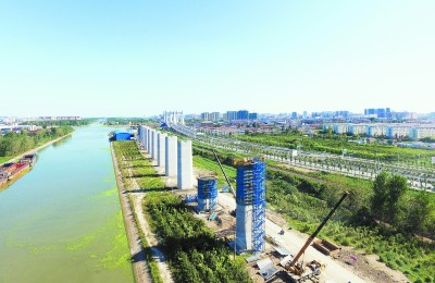 ⇧盐城市北环路与新洋港河间的盐城特大桥墩身群 |