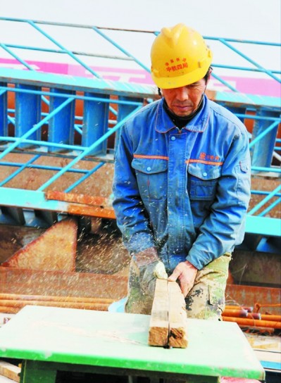 ⇧工人正在切割木料,准备模板拼装 |