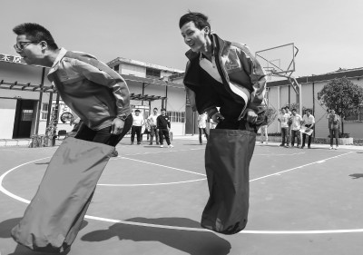 “发展体育运动,建设健康四局”工地体育主题活动走进城轨分公司福州片区项目,福州地铁1号线2标、福州地铁6号线2标项目部60余名员工参加了活动。活动有无敌风火轮、袋鼠跳、拔河、有轨电车、背夹球及球类等数十项体育活动。图为“袋鼠跳”。 (冯嘉 徐少博 摄)