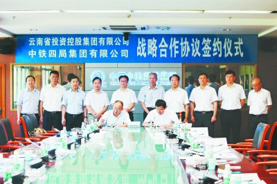 7月21日,局总经理王传霖、云南省投资控股集团副董事长刘海建分别代表双方签订战略合作协议。云南省投资控股集团党委书记、董事长孙赟,我局副总经理张庭华、邵刚等领导出席签约仪式。根据合作协议,双方将在建筑工程承包、医疗“大健康”产业、金融业务、战略性新兴产业、地方城际铁路、“一带一路”建设等方面开展广泛合作。 (杨晨 摄)