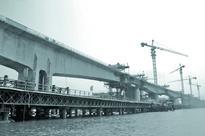 项目经理莫永春说:“南坦海特大桥海上施工风险高,这就逼得我们不得不优化技术方案在施工中进行科技创新。”