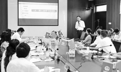 9月2日,局企业大学执行党委书记曹永学、执行校长金礼俊率教职工一行,前往建筑公司佰和佰樂项目开展“送课到工地”主题活动。此次活动是局企业大学成立以来首次将课堂搬到基层一线,旨在关注基层,注重理论与实践的融合,推进学习型组织建设。“今天听了曹书记的课感觉意犹未尽,我学到了很多新概念、新思路、新方法,收获良多!”项目工程部部长杨帅有感而发。图为曹永学正在授课。 (张飞 摄)
