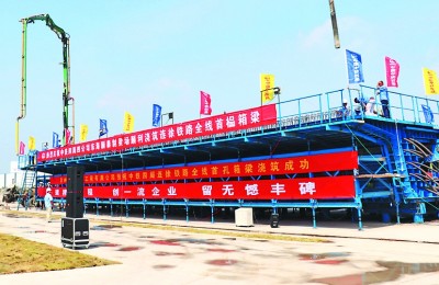 本报连云港讯 8月30日,局连(云港)徐(州)铁路东海顺泰制梁场(四公司)成功浇注全线首榀32米预制箱梁。
