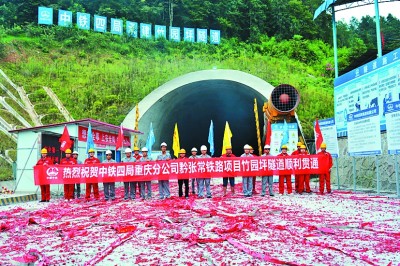 本报张家界讯 9月3日上午,由重庆分公司施工的黔(江)张(家界)常(德)铁路竹园坪隧道正式贯通,这也标志着该项目隧道施工进入收官阶段。