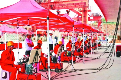9月9日,局新建太焦铁路长治县制梁场一次性通过全国工业产品生产许可认证,标志着长治县制梁场具备了预应力混凝土铁路简支箱梁的批量生产条件。长治县制梁场承担新建太原至焦作铁路站前8标管段内174榀箱梁的预制施工任务,其中跨度31.5米箱梁152榀、跨度23.5米箱梁22榀。 (戴晓莲 摄)