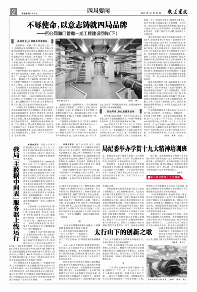 二工区项目经理袁俊国春节假期一结束,便赶回了二工区。这一年,他交出了一份令人满意的成绩单:管段内首个单位工程——南天河大桥顺利完成;天桥隧道斜井作为太焦铁路全线第一个成型的洞口工程,得到业主大西铁路客专公司的点名表扬;路基自动喷淋养生系统得到中国铁路总公司工程质量安全监督总站的充分肯定。