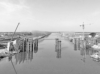 大桥主桥全长241米、主跨115米、副跨82米,均采用钢箱梁结构。钢箱梁标准段长8米,一个标准节段的顶板面积相当于一个篮球场那么大,重量近150吨,比100辆小汽车还要重。大桥主塔高61.85米,有一栋20层楼那么高,其最大截面面积足足有一间屋子那么大!别以为索塔只是一个“大老粗”,它里面的讲究可多着呢!它就像一个强壮的纤夫,无论风霜还是雨雪都要站稳脚跟,死死抓住缆索不松手,因为那缆索上可是分布着几千吨的重量呢!
