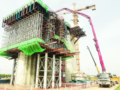 新建郑州至周口至阜阳铁路郑州南站及相关工程ZNSG-2标一分部(一公司)位于河南省开封市境内,承担着郑阜跨S102省道特大桥0~67#墩、郑万跨商登高速特大桥0#——121#墩及郑阜跨商登高速单线特大桥101——120#墩、郑阜上下行联络线特大桥101——117#部分墩施工。项目管段全长4.01公里,主要包括双线特大桥2座,单线特大桥3座,其中跨商登高速公路特大桥(60+100+60)米连续梁2联、跨102省道(40+64+40)米 连续梁2联、门式墩8个是重点控制工程。管段还包括桩基1954根,承台249个,墩台身共241个,连续梁4联,32米现浇梁3孔。开工以来,一分部狠抓标准化管理,取得了良好效果,受到了方方面面的好评。