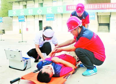 6月15,一公司郑州市迎宾路项目部组织全体员工开展了消防应急演练活动。本次消防演练分为现场抢险组、通讯联络组、医疗救护组、后勤保障组四个小组,通过救援被困人员、对火源进行灭火、救治伤员三个阶段,各救援小组成员各尽其责,顺利地完成了抢险、灭火、救治伤员及人员疏散任务。 (王晓丽 摄)