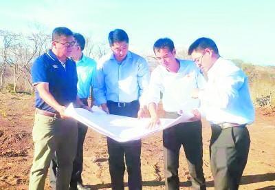 3月9日,中国驻哥斯达黎加大使汤恒(右三)、经参处参赞翟承玉一行,到中铁四局市政公司援哥斯达黎加项目部视察指导工作。汤恒一行先后察看了项目驻地和圣地亚尔水库水厂施工现场,听取了项目进展情况的汇报,对项目部前期克服各种困难,积极做好开工准备表示肯定,并希望我局继续做好各项工作,镀亮中资企业金字招牌,为中哥友谊做出贡献。 (栗金凤 李旭 摄)