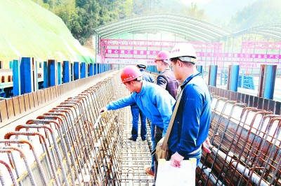 3月13日,伴着搅拌机低沉的吼声,韶(关)新(丰)高速公路经理部九分部(重庆分公司)制梁场成功预制首片25米箱梁。九分部标段正线全长6.33公里,制梁场担负1196片预制梁的生产任务。为保证首片箱梁的顺利浇注,制梁场从模板拼装、钢筋绑扎到混凝土配合比控制等均按照规范仔细检查核对,严把原材料进场关,并采用信息化系统、智能张拉压浆、梁场养护自动化喷淋系统、25米和30米箱梁模板共用等新技术新工艺,加快了施工进度。图为技术人员正在进行预制前的钢筋绑扎质量检查。 (向雪梅 摄)