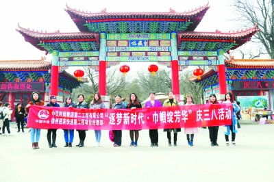 3月8日,在三八国际劳动妇女节这天,二公司徐州迎宾快速路二分部为女职工开展了集体春游、“女职工权益保护专项协议”宣传、女职工征文、女职工座谈等形式多样的文娱活动,让她们度过了一个欢乐的节日。 (李鹏 欧阳 摄)