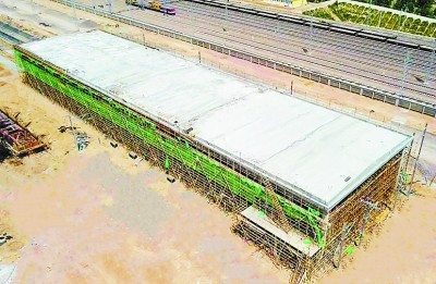 本报榆林讯 8月15日,建筑公司蒙(西)华(中)铁路MHTJ-3标房建工程项目靖边东站整备作业棚最后一块屋面板浇注成功,顺利完成第74个单体封顶。