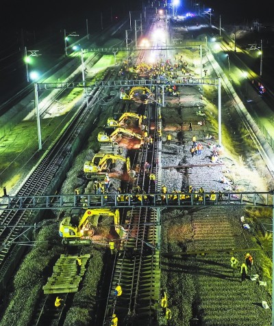 此次肥东站改造时间是12月10日至17日,在不中断行车条件下,分7个封锁点进行施工。肥东站改造完成后,商合杭铁路将引入肥东站,肥东站也将启用新站型,并具备恢复客运的条件,为商合杭铁路南段开通运营奠定基础。 (吴怀球 吴芝滨 马立 摄)