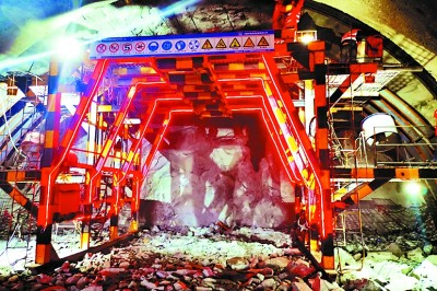 红山隧道位于山东省枣庄市山亭区和平邑县境内,为双线分离式隧道,左洞长1420米,右洞长1434米,洞身最大埋深约180米。该隧道围岩坚硬,地质复杂,施工难度极大。 (贾鹤 王野)