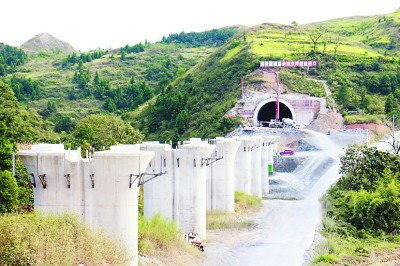 肖家岗大桥位于张家界市永定区尹家溪镇肖家岗村,分别连接肖家岗隧道出口路基段和宋坪隧道进口。大桥全长356.37米,共计墩台12个,最高墩身16.5米,施工难度大,技术要求高,安全风险高。 (汪银辉 赵成斌 张世宏)
