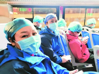 2月25日晚,凌素花接到通知,她和队友们支援武汉中心医院后湖院区,排班执行四班制度。2月26日,她正式上岗,当天值2:00~8:00班,三人一个班组。天气寒冷,班车师傅12点半已准时在酒店门口等她们出发。途中,大家相互鼓励,相互支持,大概四五十分钟车程,到达后湖院区住院部。