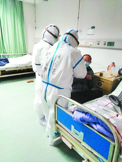 一个忙碌的大夜班就要结束了,天亮了,凌素花给患者抽血、测血压、量体温、发药、喂药,帮所有患者暖瓶里装满开水,协助洗脸、漱口,送饭、喂饭、更换床边垃圾袋,忙完所有的工作,她才拖着疲惫的身躯,走出隔离病房,做好防护措施,履行12道卫生规范后,随班车回到住处。此时,她已十个多小时没有吃饭喝水,双手也被防护手套捂得发白,但每每想到病人痛苦、疲惫的神情,她就精神振作、充满斗志。 (王竹馨)