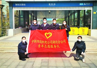 疫情当前,使命在肩。中铁四局机电公司湖北分公司组建青年志愿服务队,通过开展疫情预防专项知识培训,志愿者短时间内掌握防疫防控知识,并在做好自我防护基础上,积极融入志愿者服务工作,在地铁站内参与到为乘客测量体温、线路指引、引导乘客乘车扫码、有序进站、帮助妇女老人提重物等地铁运营服务中。 (虞璇)