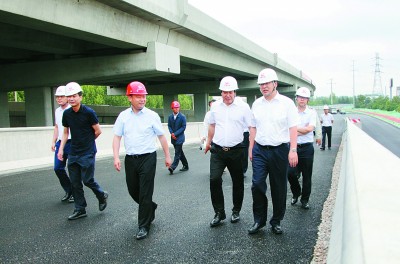 本报济宁讯 5月30日,中铁四局党委书记、董事长李新生陪同山东公用控股公司党委书记、董事长李鲁,副总经理李鹏一行,到三公司济宁内环线快速路项目检查指导工作。