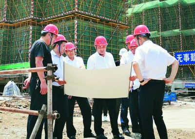 刘勃在售楼中心详细了解项目产品基本情况和下一步销售工作部署,认真听取项目开发建设情况汇报,随后到项目施工现场检查安全生产和质量工作。刘勃肯定项目部克服新冠疫情等不利因素影响,敢于亮剑,善打硬仗,现场进度和安全质量都取得令人满意的成绩,要求项目部紧扣“消除事故隐患,筑牢安全防线”主题,继续抓好安全质量工作,力争在今年10月底前实现全部13幢住宅楼结构封顶。