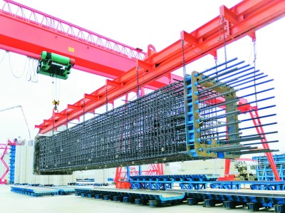⇧预制墩柱钢筋笼吊装 |
