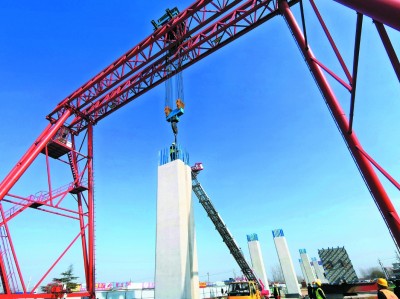 济宁快速路一标工程采用装配式施工,其墩柱、盖梁、箱梁采用全预制拼装工艺,构件集中加工预制,完成后直接吊装至现场进行拼装。预制拼装技术是我国装配式混凝土构件产业化发展新型施工方向,具有成品质量高、施工速度快、对周边环境影响小等优点。