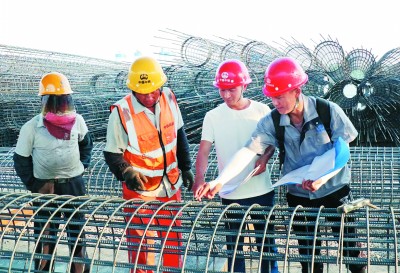 来自河南的70后农民工李小伟谈起现场培训的收获时说:“我没什么文化,识字也不多,以前每次培训完觉得都懂了,但是干活的时候还会出现一些小问题;现在好了,会议室里学完,现场再手把手教一遍,记得牢。” (周永 唐雨卉 摄)