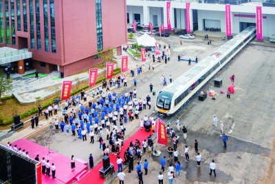 本报济南讯 8月15日,济南轨道交通2号线电客车顺利抵达中铁四局建筑公司济南轨道交通R2线王府庄车辆段施工现场,车身以白色为主色调,点缀标志色河脉黄,设计最高时速100公里,为2号线年底通车打下坚实基础。