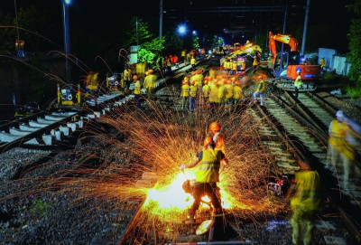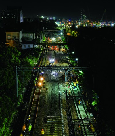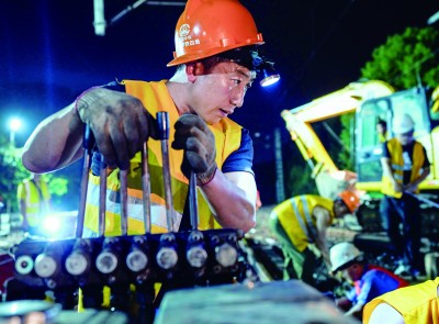 当日零点三十分,随着现场总指挥下达施工命令,百余名施工人员、数十台机械有序进入场地,临时栅栏安装、雨棚拆除、站台拆除、线路和道岔拆除等各道工序有条不紊地进行着。