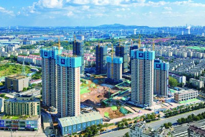 本报南京讯 10月7日,在中铁四局建筑公司施工的南京化工园区王山头地块棚户区改造工程施工现场,200多名建设者放弃节日休息,坚守工地一线,加速推进民生工程建设。随着A地块2号楼屋面板钢筋绑扎作业完毕,标志着2号楼主体结构已具备封顶条件,待质检站验收通过即可完成封顶,届时该项目将有7栋楼实现封顶。