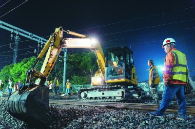 9月15日凌晨4时,随着沪昆铁路下行线既有正线Ⅰ道拨接至嘉兴站南场新建5道进行过渡的完成,标志着由中铁四局负责施工嘉兴站场改造工程南、北转场施工迈出关键一步,也为9月24日沪昆上行线既有Ⅱ道拨接至新Ⅲ道过渡,最终完成南北场转场施工提供保障。届时将拆除北场一二站台、雨棚、线路及相配套的四电工程,为后续北场腾出场地、打开北半场作业面,以及全站如期开通奠定坚实基础! (庄剑辉 李振洪 欧阳 摄)
