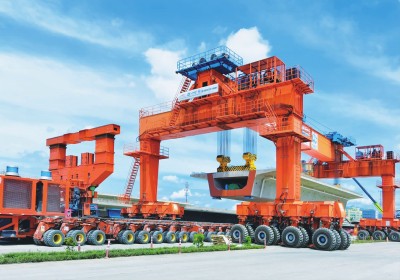 图为第100榀箱梁提运