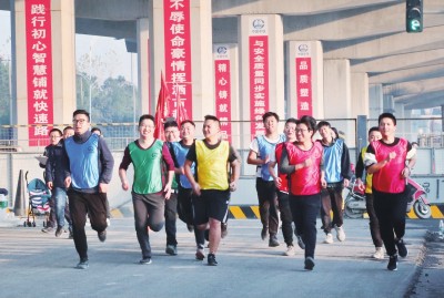 12月6日,中铁四局绍兴329国道项目部(一公司代局指)举办以“健康生活每一天”为主题的冬季健康跑活动。活动设置男子、女子百米赛跑、4×100米接力赛和2公里耐力跑等四项比赛内容。项目部员工踊跃报名,积极组队参与活动。他们努力克服体力极限,以较强毅力完成比赛,增强了体质,展示了精神面貌,倡导了健康生活方式,传递了团结协作精神。(冯英 周俊 摄)