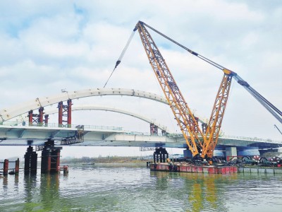 12月6日,随着最后一段拱肋吊装到位,中铁四局上海公司承建的盐城市赣江路——海洋路连接大桥主桥拱肋顺利合龙,标志着大桥主体结构施工基本完成。