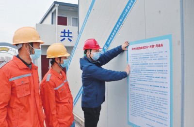 1月26日,中铁四局二公司苏州X352县道项目部张贴疫情防控通告,倡导参建员工在苏州过年。(赵广生 万三宝 摄)