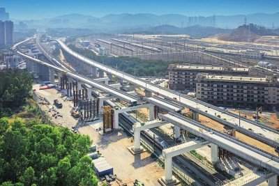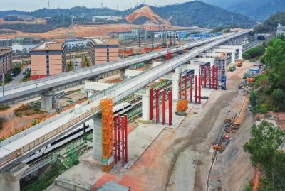 1月20日凌晨4时,随着最后一孔箱梁横移到既定位置,由中铁四局承建的赣(州)深(圳)铁路下行疏解线福龙路特大桥上跨广深港高铁共9孔箱梁横移施工全部完成。该现浇梁横移施工为国内首次上跨既有广深港高铁作业。